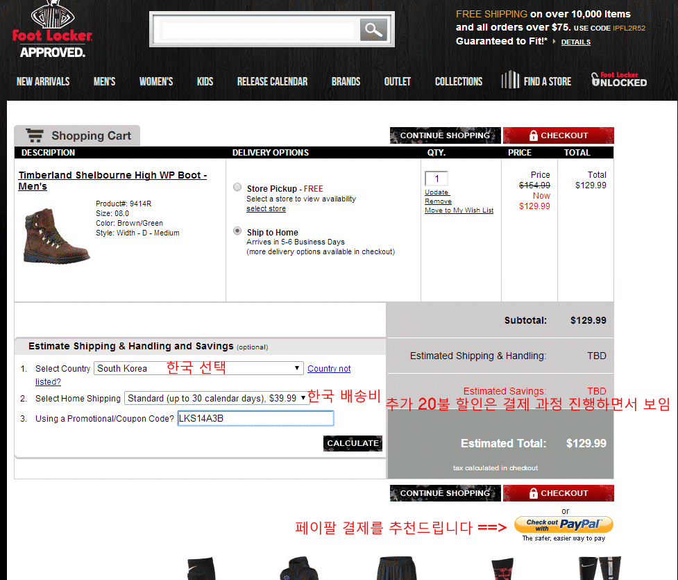 풋라커에서 저렴한 팀버랜드 부츠를 한국까지 직배송으로 직구 하도록 하겠습니다.