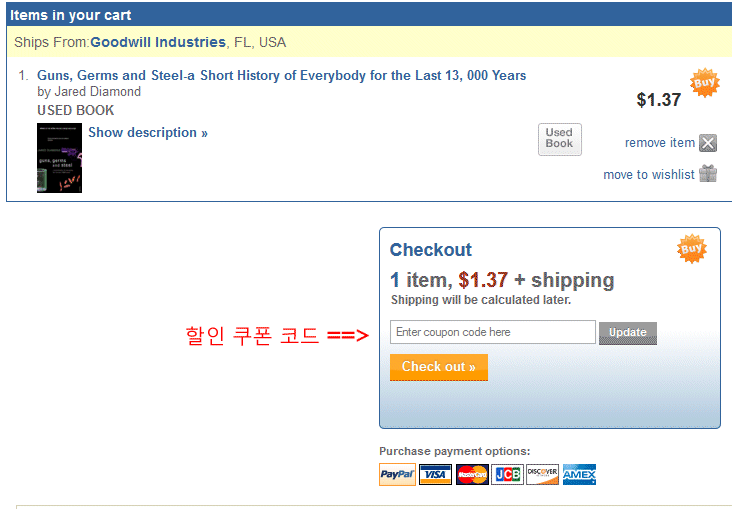 저렴하게 1.37불 짜리 중고 서적이 있습니다.