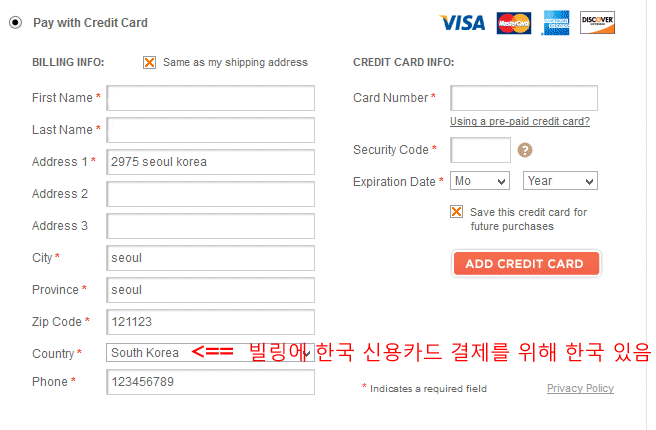 특히 신용카드 결제의 경우는 워낙 한국에서 많이 주문들 하셔서 (어쩌면 미국보다 더 많이)