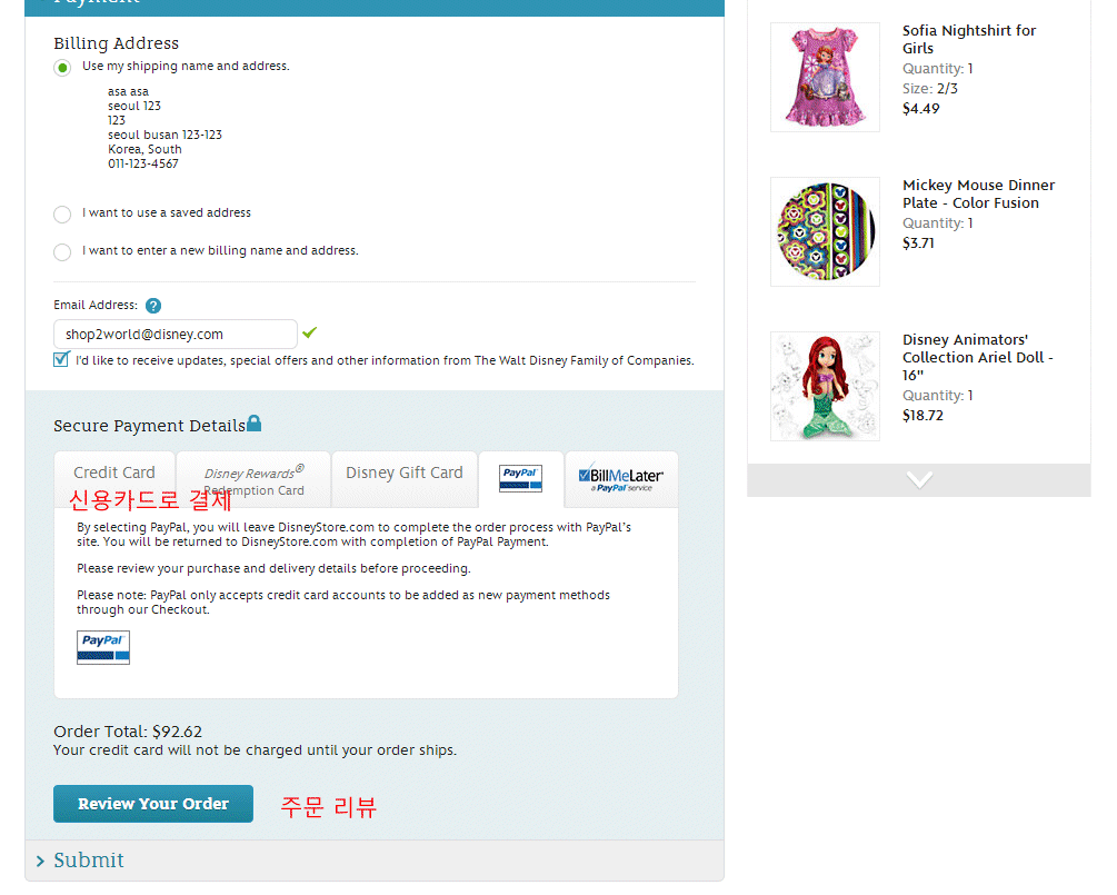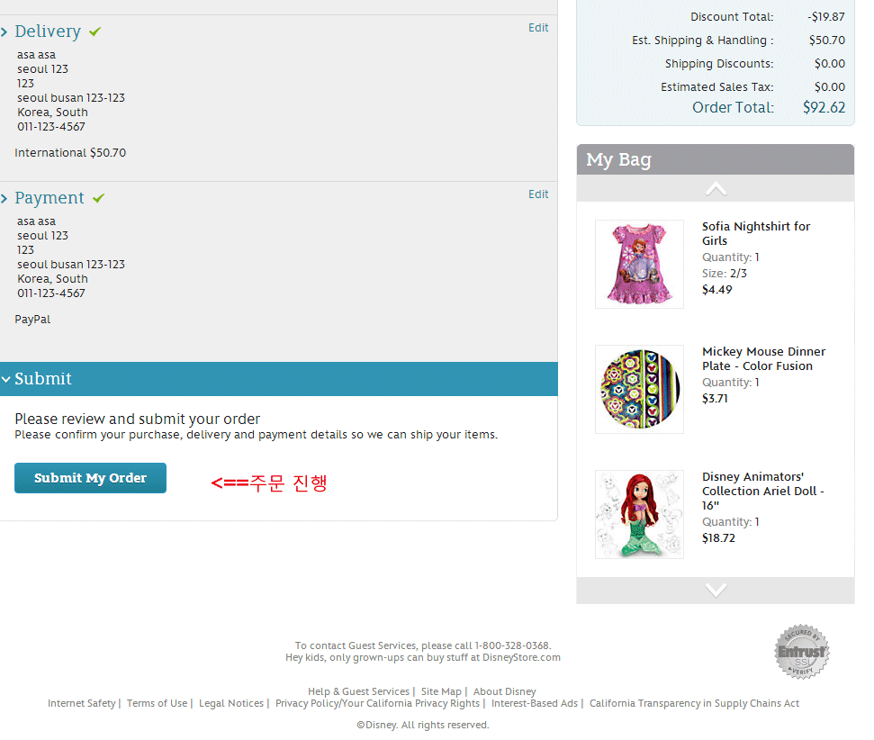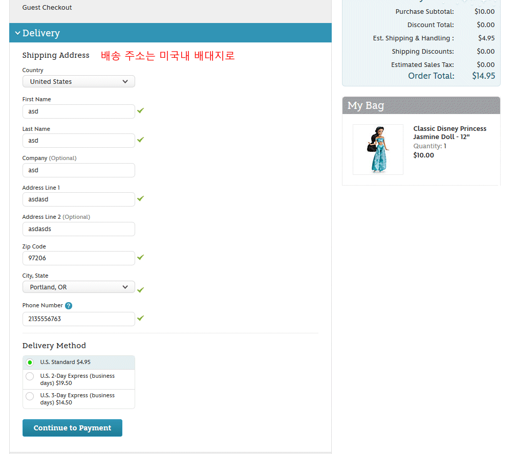 참고로 디즈니는 오레곤으로 받으시면 미국내 세금이 붙지 않습니다.