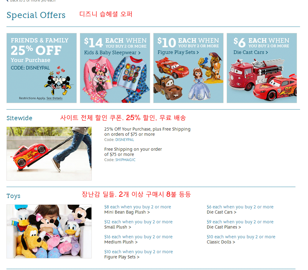 구매전 먼저 디즈니의 세일과 쿠폰등의 스페셜 오퍼도 확인 해 봅니다.