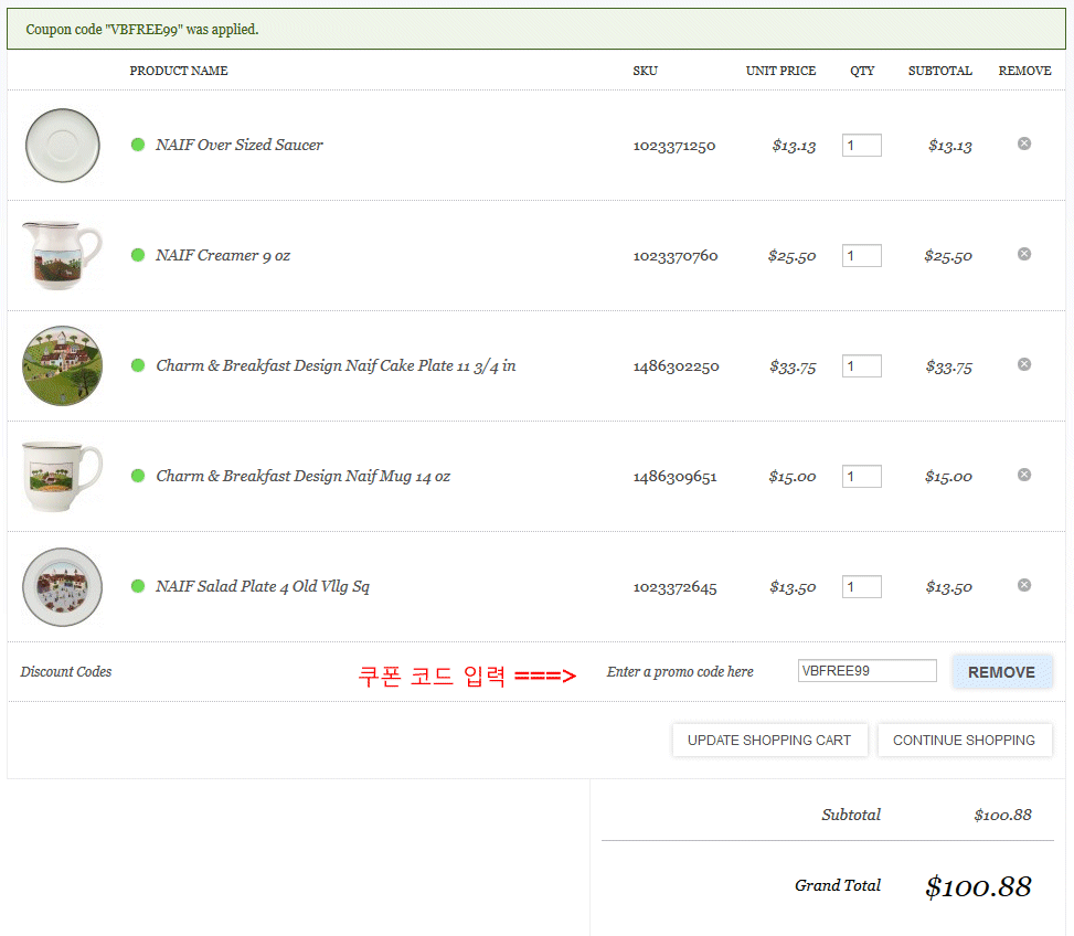 할인 쿠폰 코드를 입력합니다.