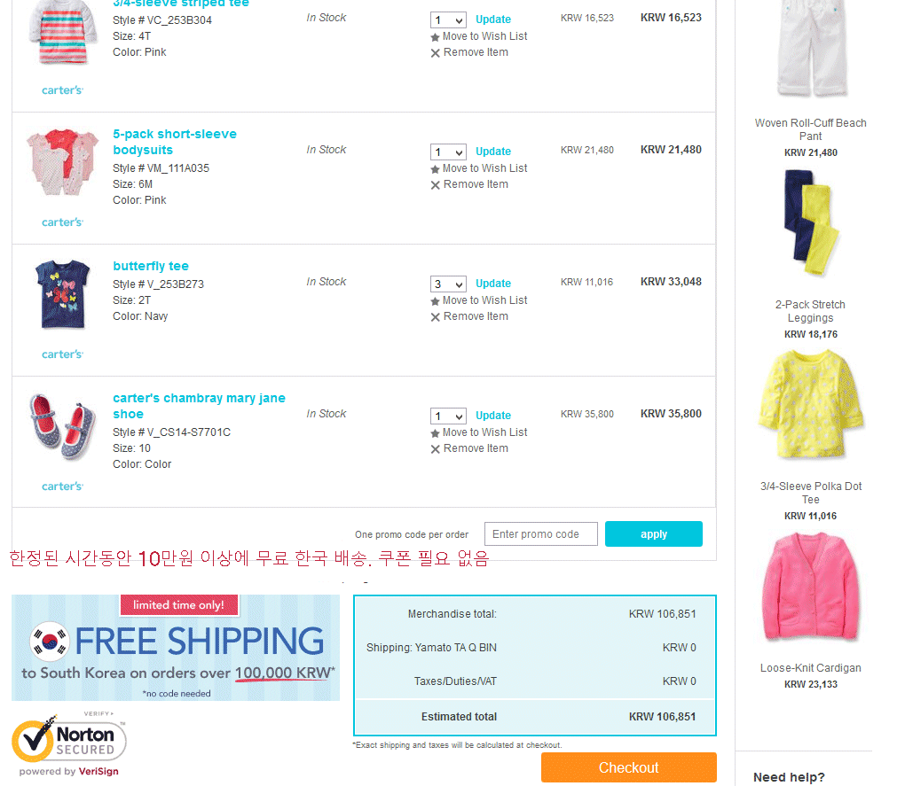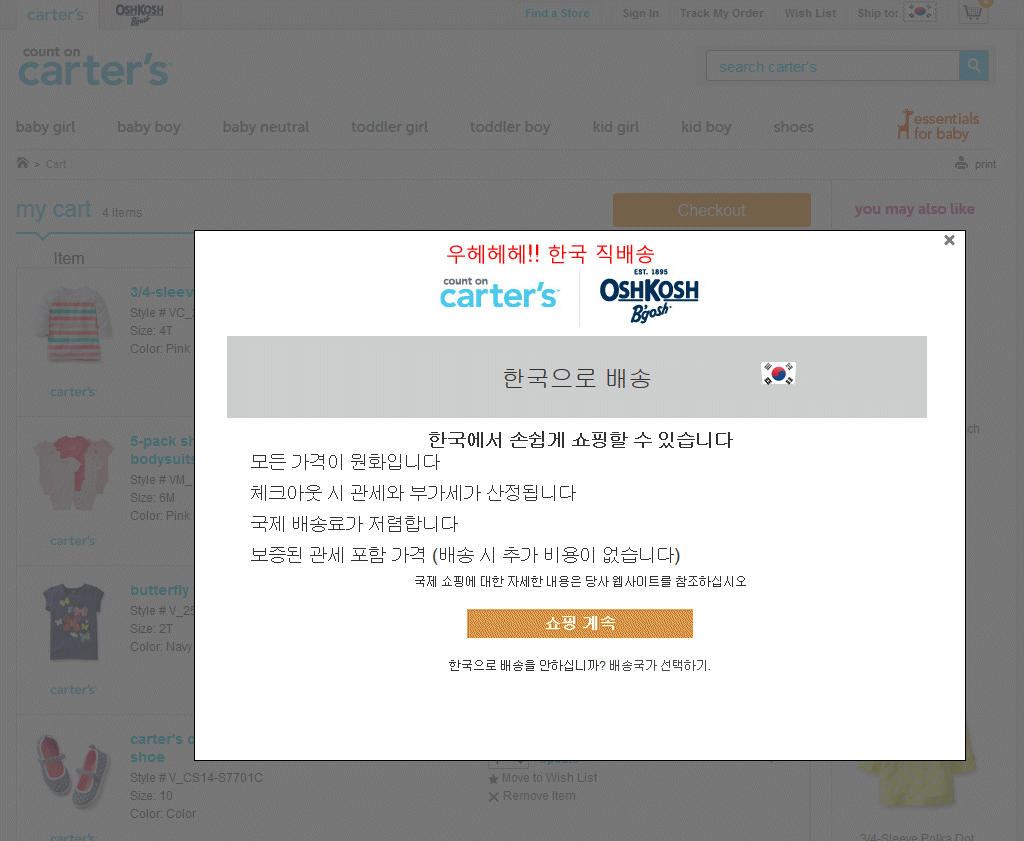 카터스 같은 좋은 아동복 이젠 마음놓고 해외 배송비 염려 없이 해외 직구를 하실 수 있네요.