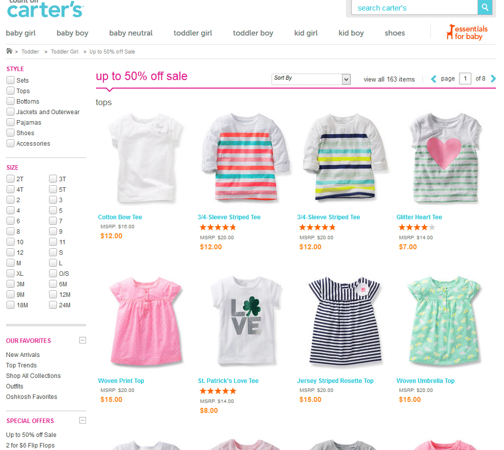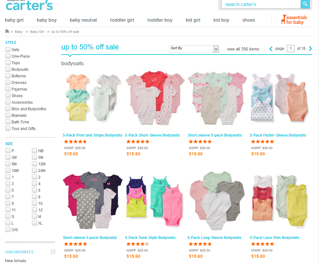 카터스는 지금 50% 세일을 합니다.