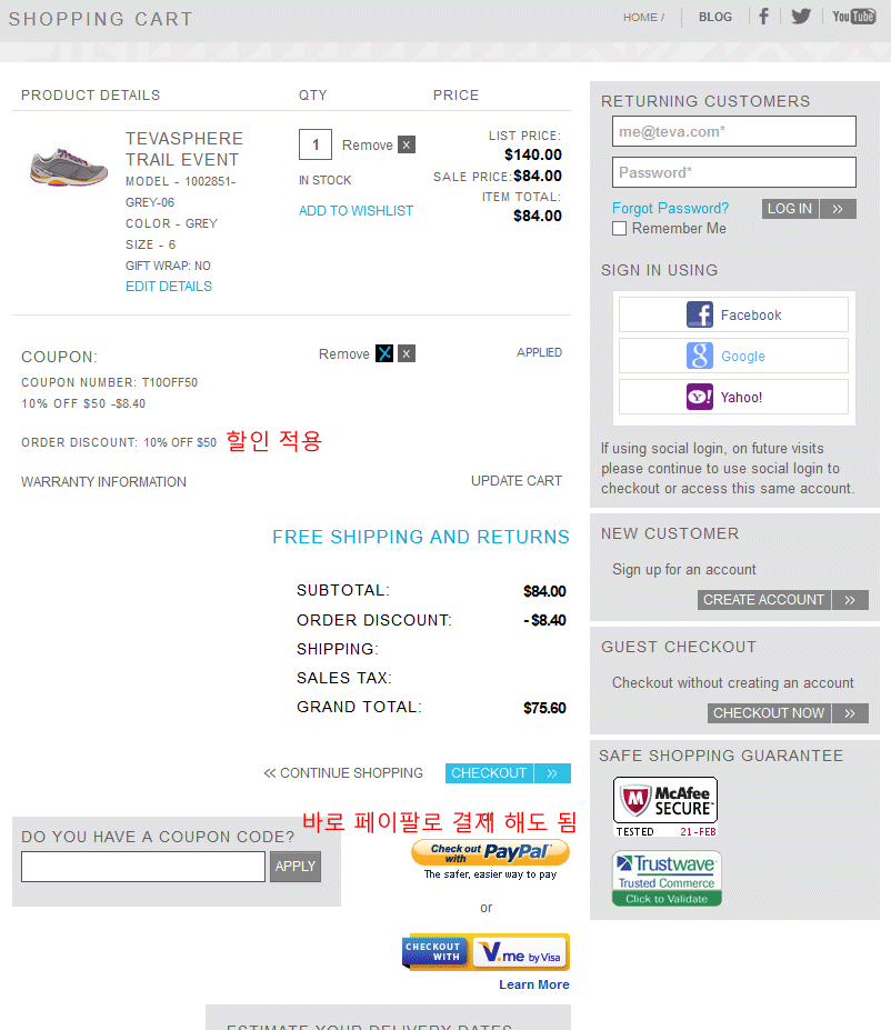 테바 공식 쇼핑몰에서 테바 신발을 직구해 봅니다.