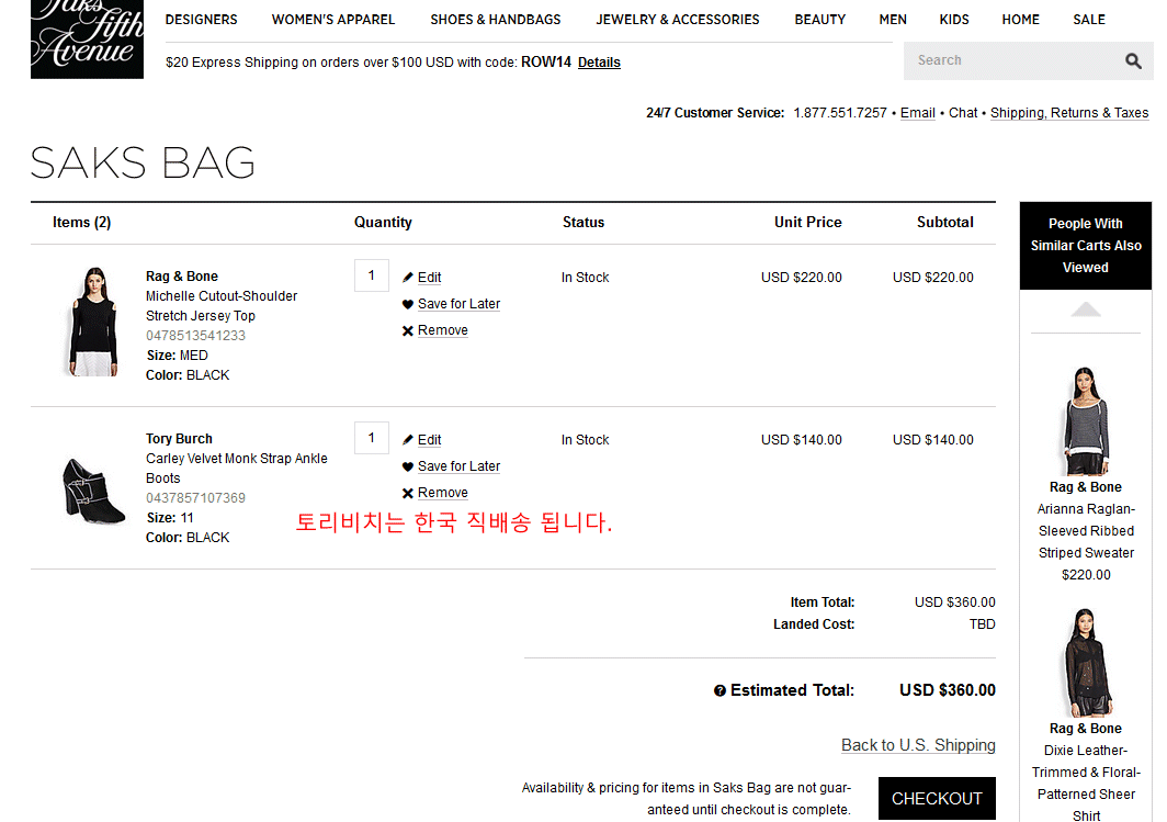 여기서는 삭스피프스 애비뉴를 한국직배송으로 직구하는 것과, 미국 배송대행 서비스를 이용해서 직구하는 것으로 살펴 봅니다.