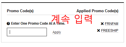 참고로 삭스 피프트 애비뉴는 특별히 제약이 없는 경우 여러개의 할인 쿠폰 코드를 지정할 수 있습니다.