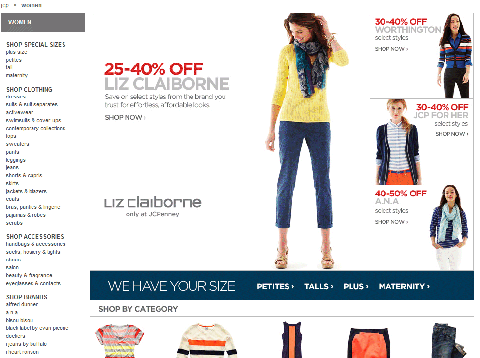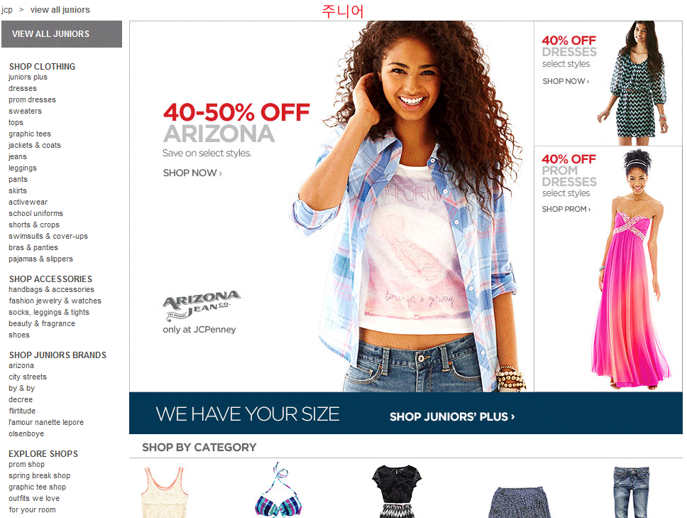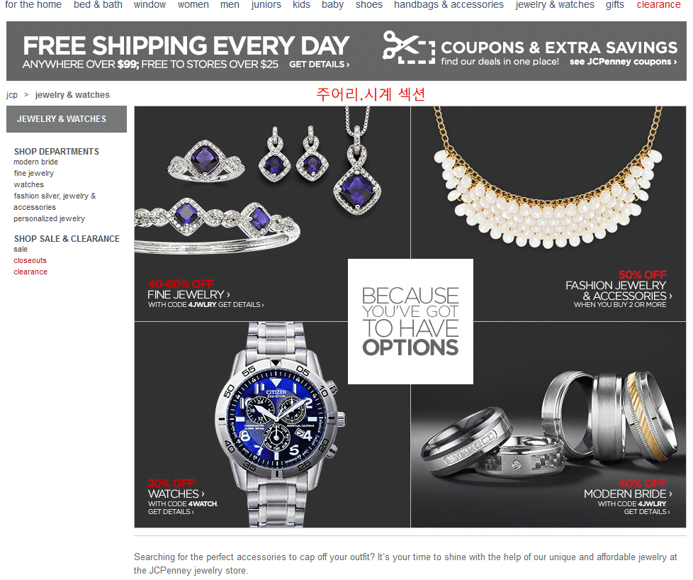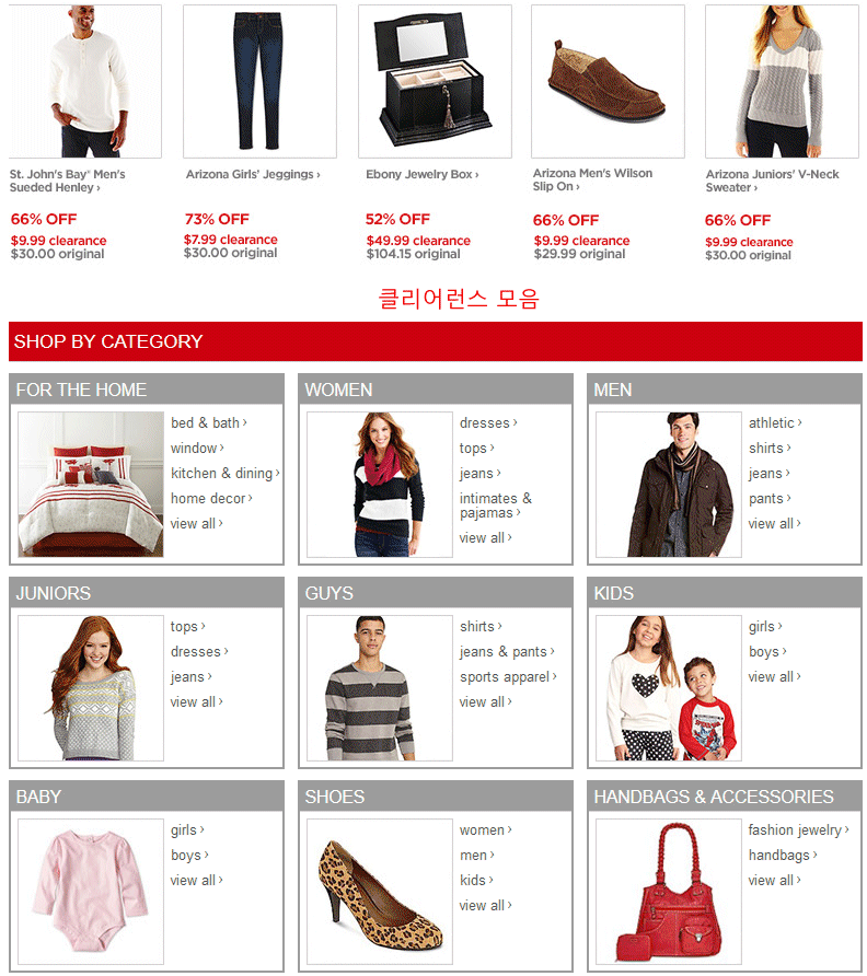 그리고 제이씨페니는 클리어런스만 따로 섹션을 두고 있습니다.