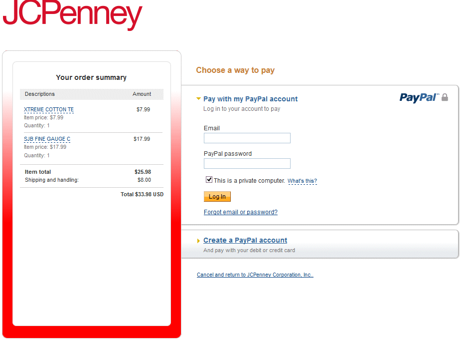 제이씨페니는 페이팔로 결제 하셔도 됩니다.