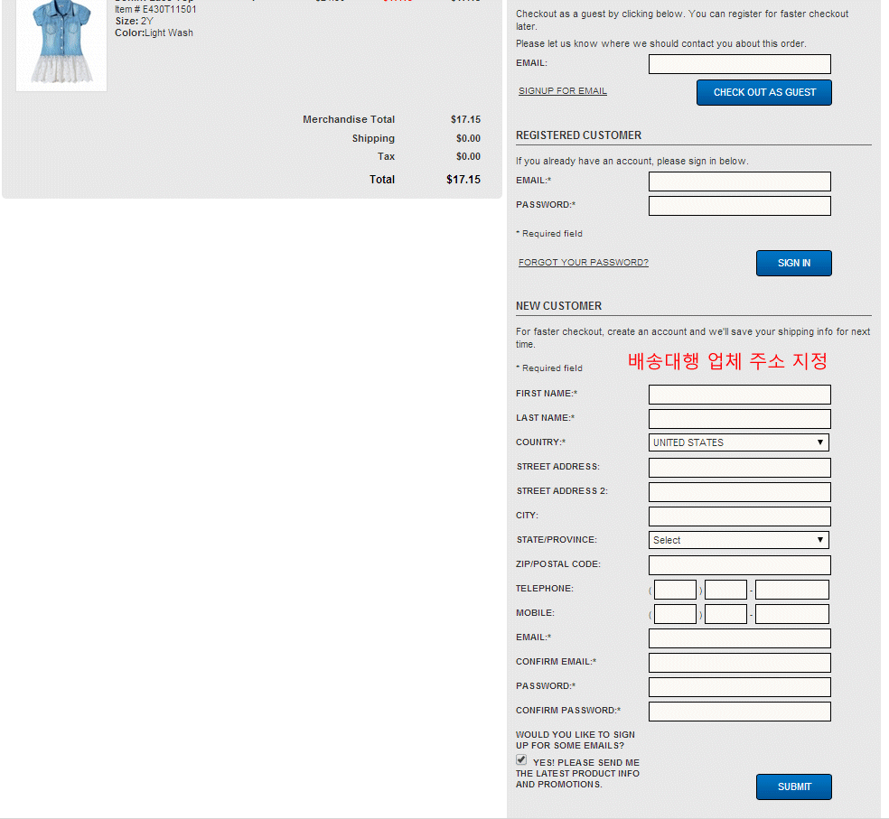 럼은 배송대행 업체의 주소를 쉬핑어드레스와 빌링 어드레스에 사용하시면 됩니다. (드럭공법)