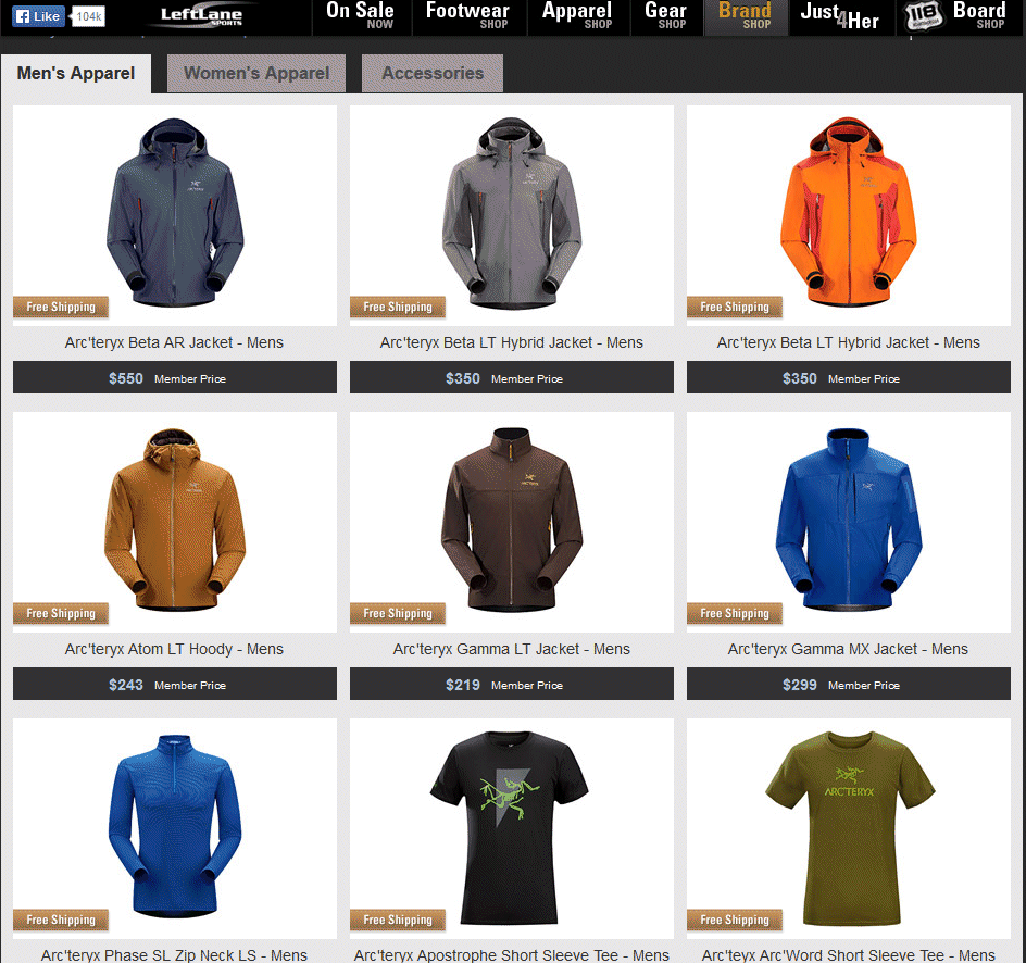 아크테릭스등 고급 아웃도어 브랜드가 많이 있습니다.