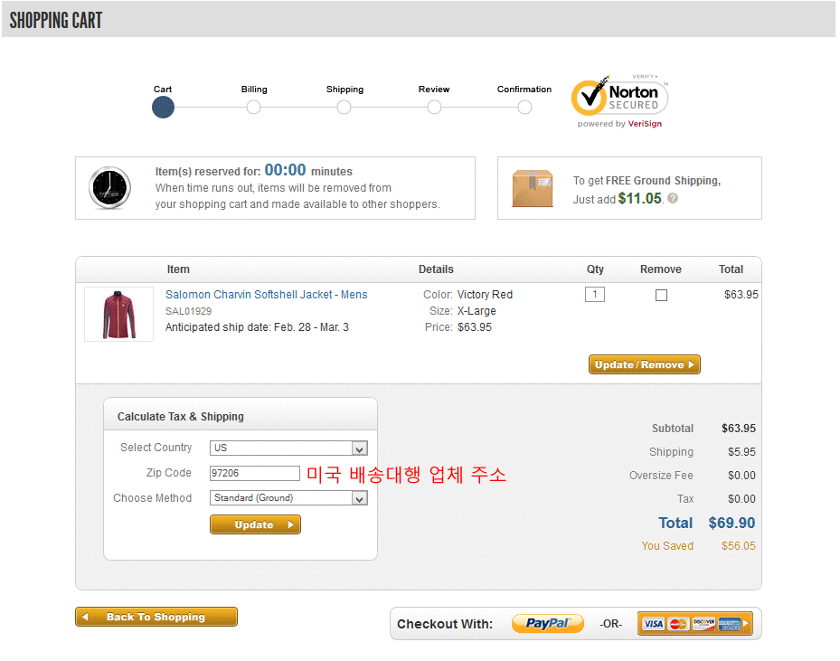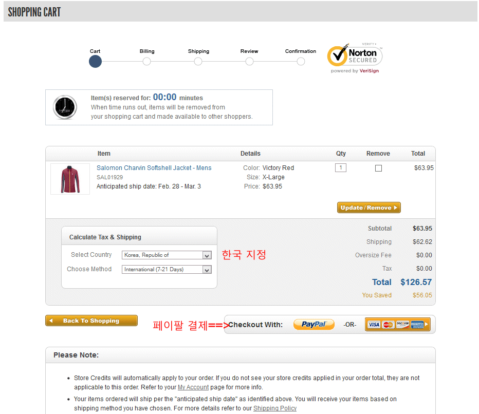 장바구니에서 한국을 지정하시면 한국까지 직배송비가 자동으로 계산됩니다.