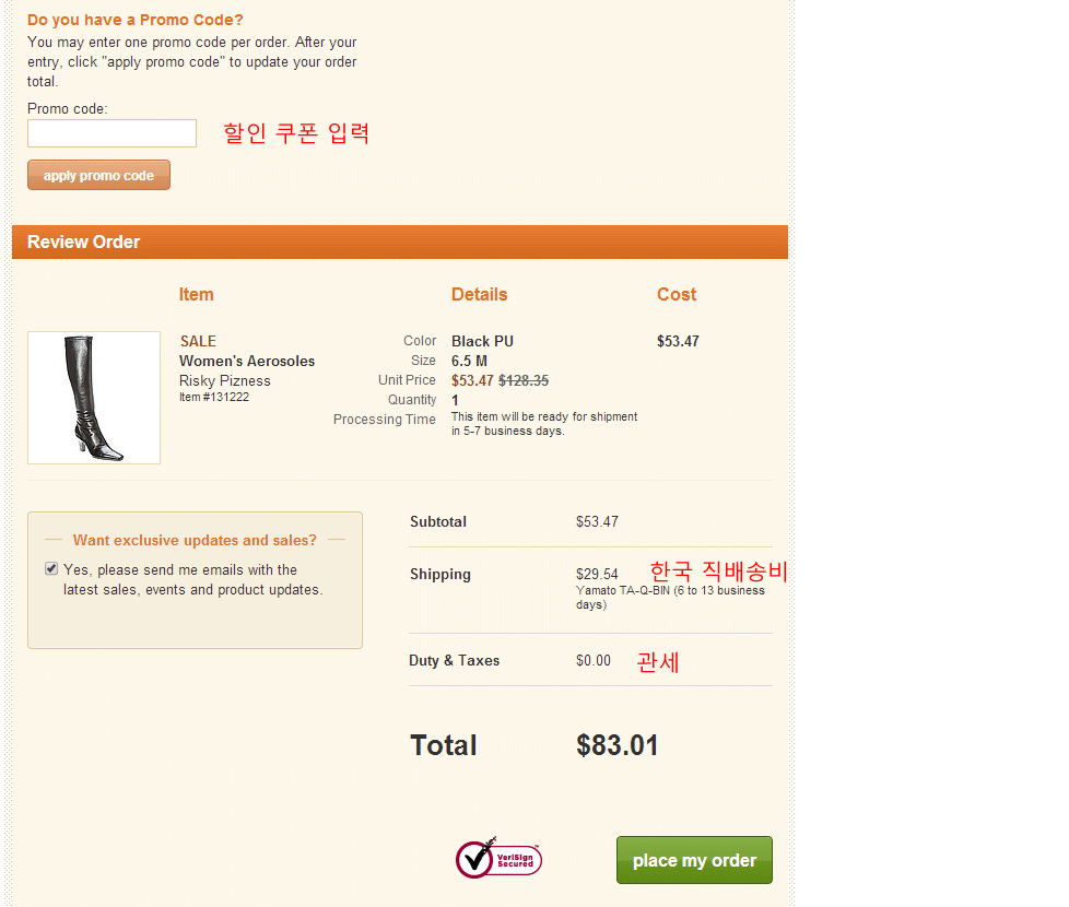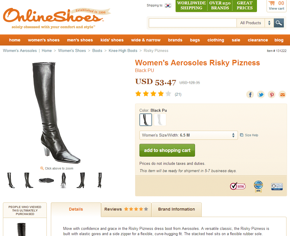 슈바이와 비슷하다고 보시면 됩니다. 온라인 슈즈는 한국 직배송을 합니다. 직배송을 이용하시면 부츠 같은 경우는 배송대행을 이용한 배송비 보다 미국내 배송비나 세일즈 텍스를 감안하면 더 저렴합니다.