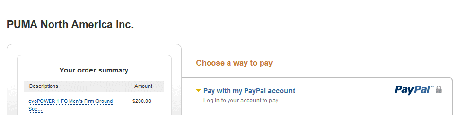 결제 과정에서 푸마는 페이팔 결제를 이용하시거나