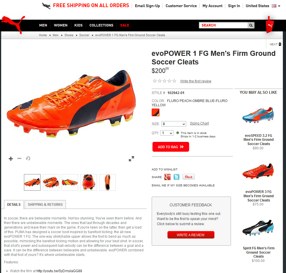 암튼 이 독일 브랜드 푸마의 미국 쇼핑몰은 푸마의 패션, 축구용품, 모터 스포츠 용품, 러닝화, 골프용품, 그리고 스니커즈 등 푸마의 라이프스타일 제품을 구매하실 수 있는 곳입니다.