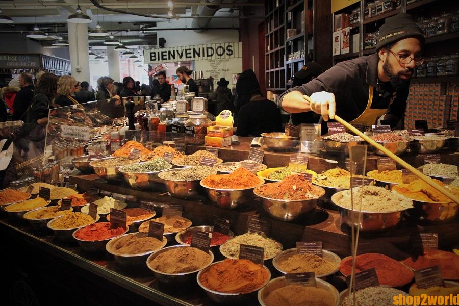 향신료 가게 입니다. 긴 수저로 향신료를 뜹니다.