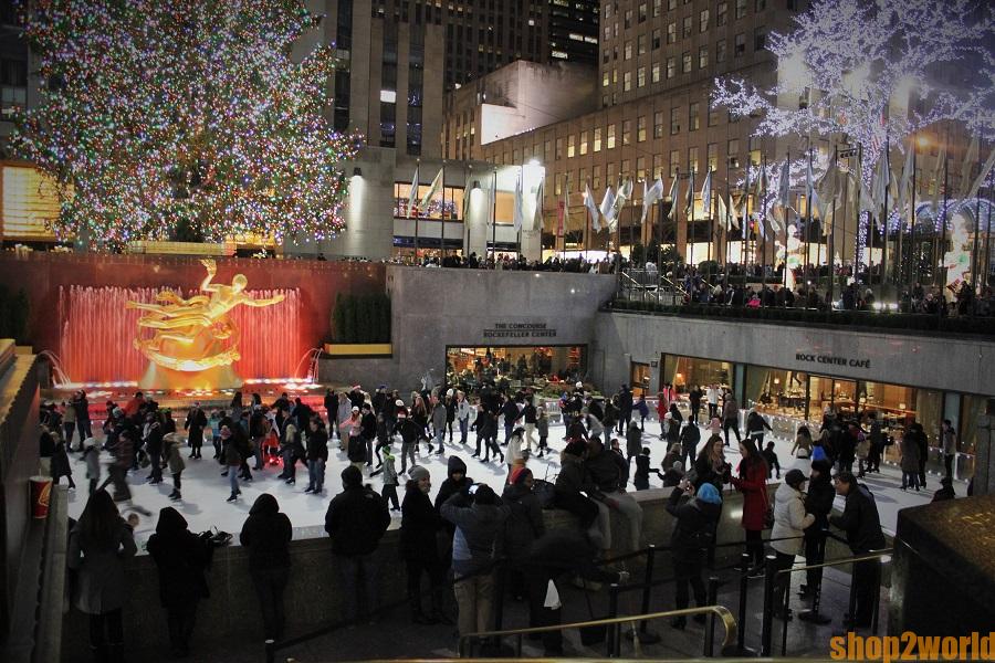 록펠러 센터의 아이스 링크에는 크리스마스와 연말연시를 즐기려는 들뜬 사람으로 가득합니다.
