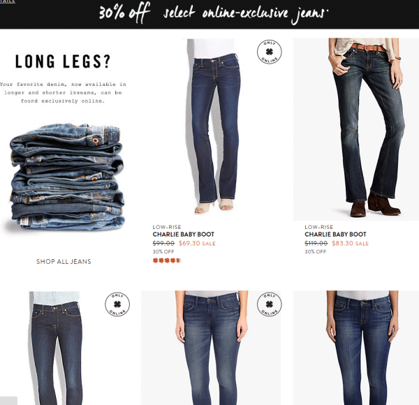 30% Off Online Denim Exclusives + Free Shipping! Online Only. Exclusions Apply 7/16-7/19