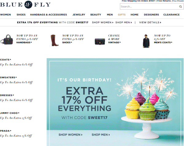 (11/14 – 11/16): Bluefly’s 17th Birthday! Take 17% Off Your Order With Code SWEET17