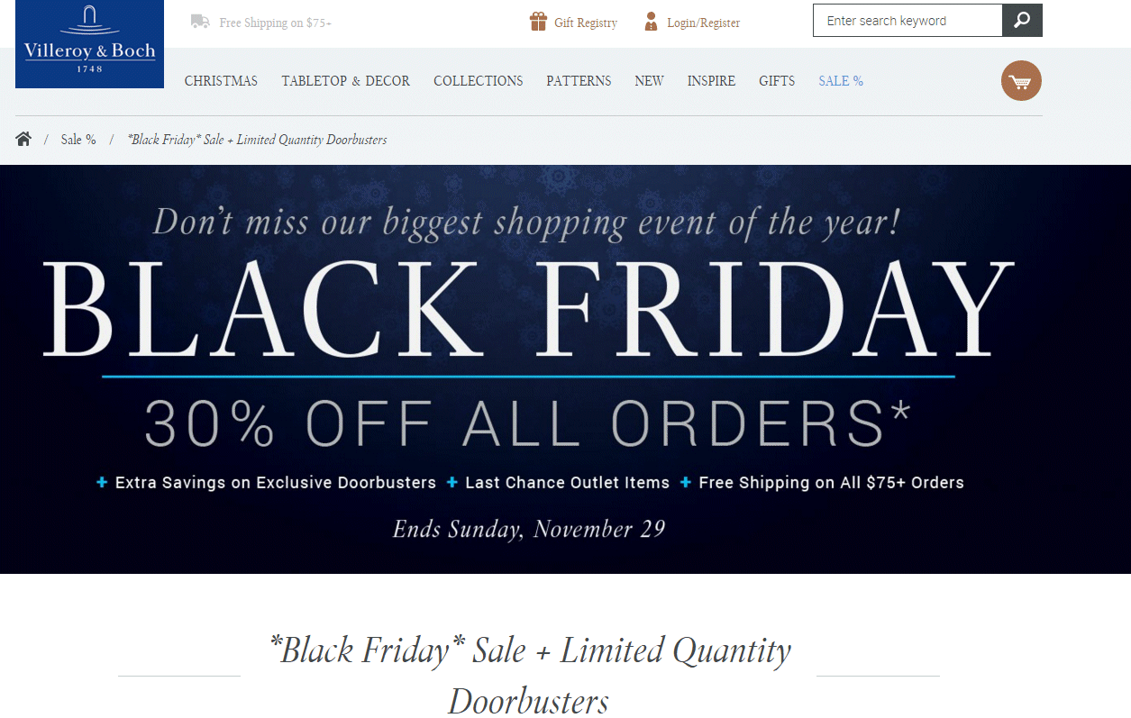 Black Friday/CyberMonday Blowout Sale – 30% off Sitewide at Villeroy & Boch! — WEDNESDAY, NOVEMBER 25 – 30th!