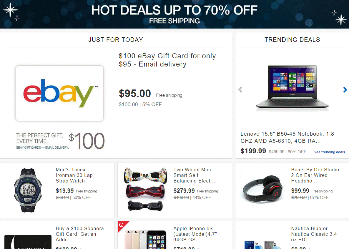 사이버먼데이 딜에는 이메일로 보내지는 100불 이베이 기프트카드가 95불이라서 5불 할인을