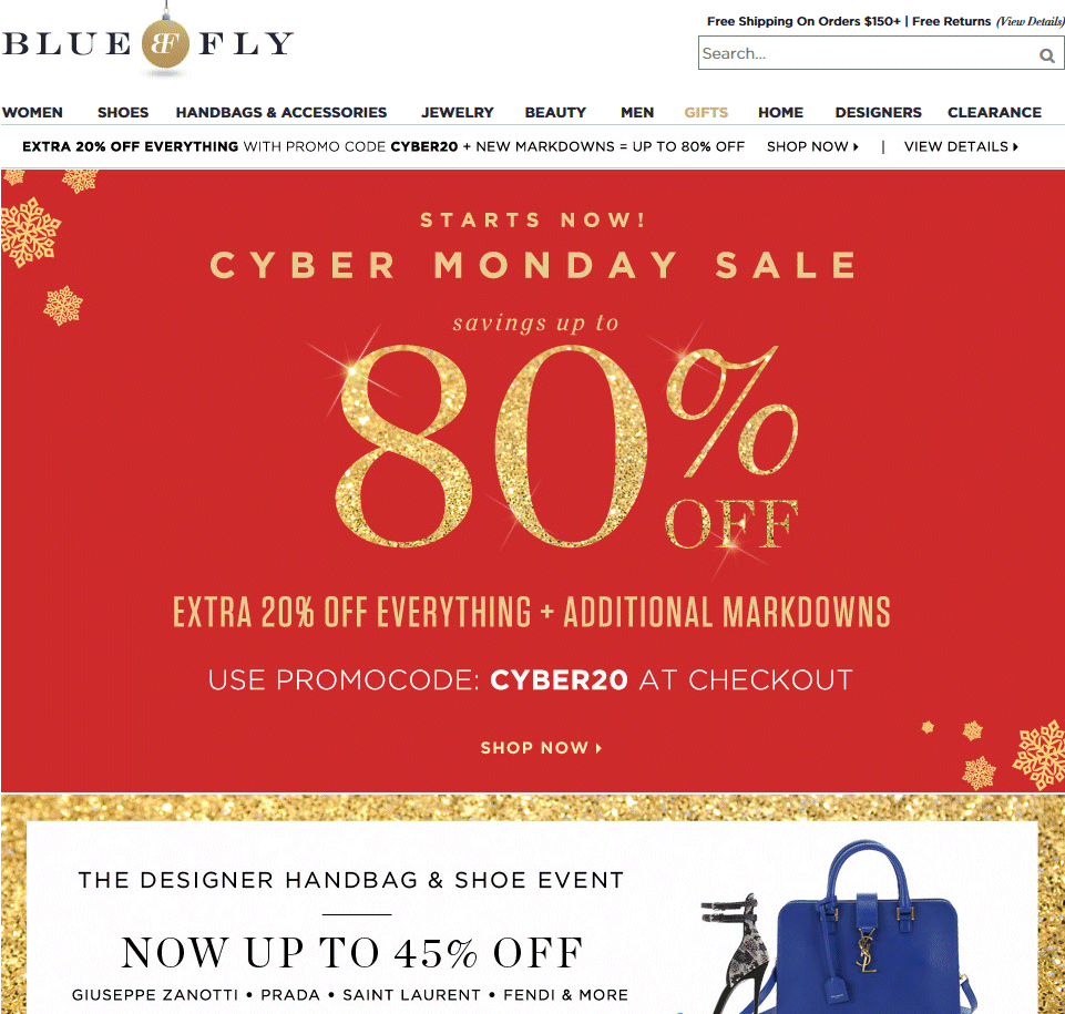 Bluefly.com : Cyber Monday Sale! Extra 20% Off With Promo code CYBER20 Plus Markdowns Up To 80% Off. Shop from 11/29 at 1 PM through 12/1 5:30 AM.