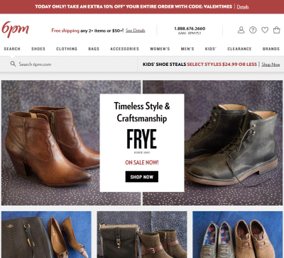 6PM.COM 10% off Coupon Code: VALENTINES Ends.2/5
