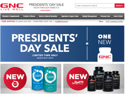 GNC.com  25% off president’s day sale