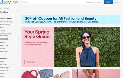 ebay.com 20% Off $25+ Fashion & Beauty Purchase Coupon Code: C20HELLOSPRING Ends.3/11