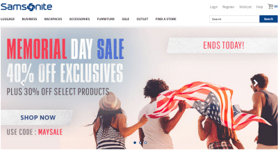Samsonite : Extra 10% off on top of 30% or 40% Memorial Day Code: MAYSALE
