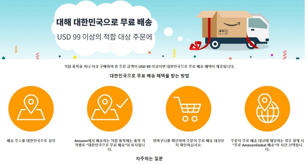 일단 99불 이상 구매로 하면 되고 무료 AmazonGlobal 배송이 결제 시 나오게 됩니다.