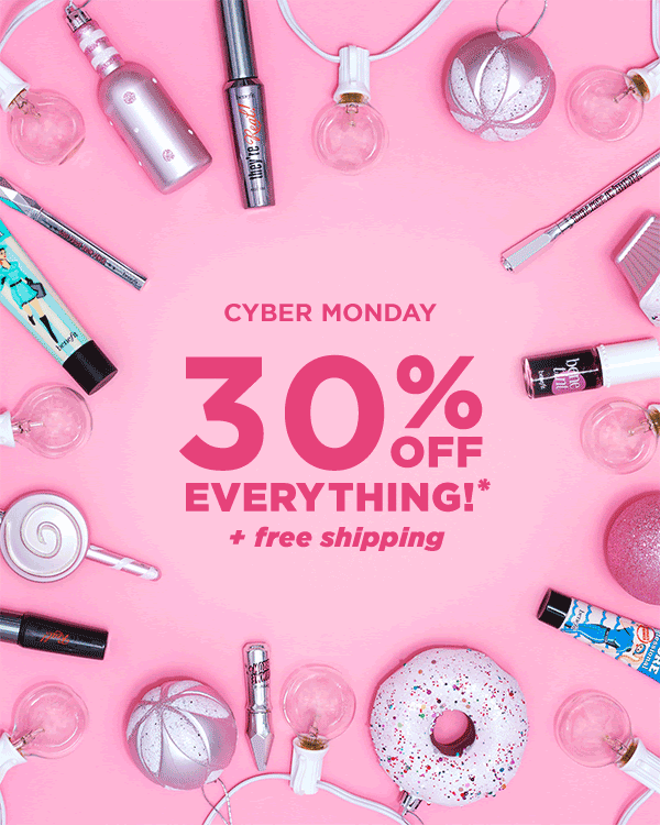 Benefit Cosmetics Cyber Monday Sale! Score 30% off sitewide and free shipping on your order. Plus, get free 2-day shipping on orders $75+!* Use code: CYBER30. Valid through 12/1.