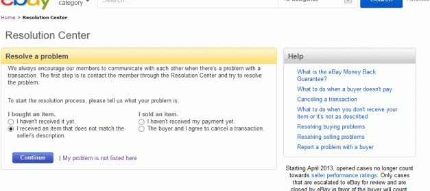 이베이에서 구매를 하셨으나 설명한 제품과 다른 제품을 받으셨을 경우의 대응방법 안내입니다. 물론 먼저 판매자와 이야기를 하시는 것이 신사적이겠죠. 그러나 해결이 안될 경우에는 레숄루션 센터를 이용하십니다. 다음의 링크입니다. http://resolutioncenter.ebay.com/ 여기에서 “I received an item that does not match the seller’s description.” 라고 하는 부분 즉, “판매자가 제품 설명한 것과 다른것을 받았다” 이렇게 선택하고 진행을 하십니다. 만약 판매자가 “자신은 제품 판매 페이지에 정품이라고 적은 적이 없다” 이런식으로 교묘하게 나온다면 다음과 같이 합니다. 짝퉁을 받았다고 신고를 하십시요. 다음의 …