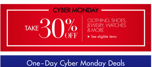아마존의 사이버 먼데이 세일입니다. 의류 30% 할인 쿠폰 됩니다. Amazon.com Cyber Monday Savings Coupon Code: CYBERMON Start Date: Nov 30, 2015 End Date: Nov 30, 2015 Categories: Apparel & Accessories, Jewelry, Shoes, Watches