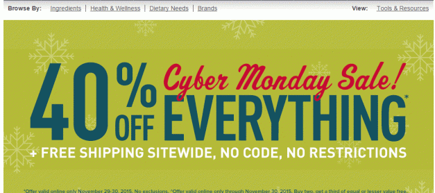 지앤씨(GNC) 사이버먼데이 세일. 사이트 전체 40% 할인