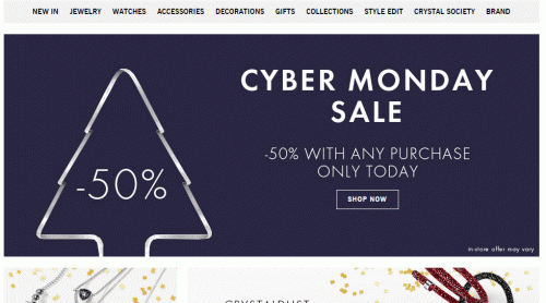 Swarovski.com Coupon Code Save an amazing 50% off during Swarovski’s Cyber Monday Sale! But hurry – the offer is only valid on November 28th.