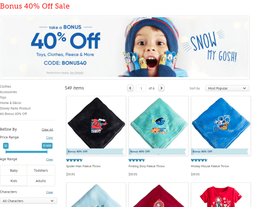 Disneystore.com Coupon Code Disneystore.com : Take a Bonus 40% Off Toys, Plush, Tees and more. Some Restrictions Apply Coupon Code: BONUS40 Ends.12/25