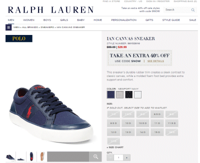 폴로 랄프로렌입니다. 최대 65% 세일에 세일 추가 40% 할인 됩니다. 쿠폰은 SNOW 쿠폰적용하시면 남성 스니커즈 14불대로 저렴합니다. 꿩대신 병아리라고, 세일로 저렴하게 장만하세요. Ralphlauren.com Coupon Code : luxury clothing Ralphlauren.com Enjoy up to 65% Off + take an extra 40% off sale styles with code SNOW Ends.1/17 Polo Ralph Lauren Gift Card on ebay Polo Ralph Lauren at 6pm.com